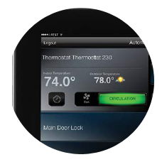 Control your Z-Wave® enabled lighting, thermostats* and shades—an excellent way to save money and energy